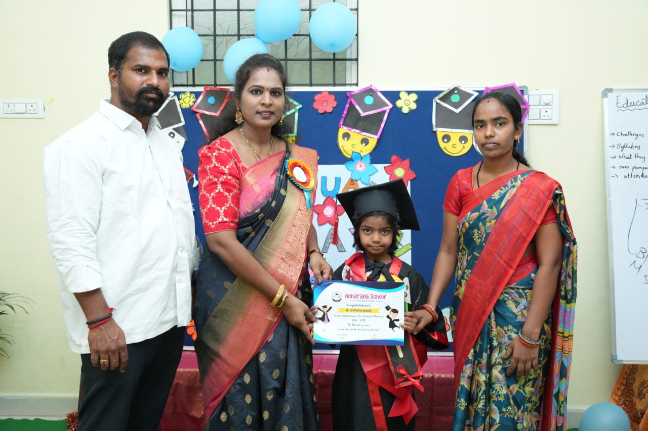 At Acharana Playschool, we believe the foundation of a child’s future begins with love, curiosity, and a safe space to grow. Located in Chengicherla, we offer a vibrant, nurturing environment where children from playschool to 1st Class are encouraged to explore, imagine, and learn with joy.